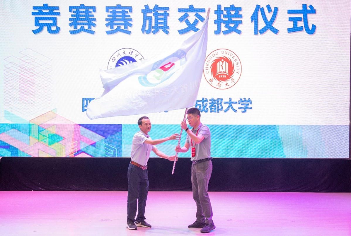 董建辉副院长代表我校在闭幕式上进行了赛旗交接仪式,并表态我校有信心办好下一届竞赛,将尽全力做好赛事服务。