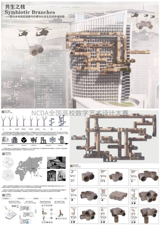 图1 获奖作品《共生之枝--高密度都市模块化共生空间探索》