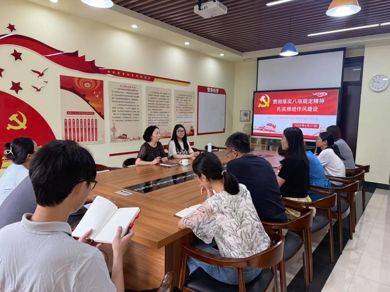 党委书记黄进教授以《贯彻落实八项规定精神,扎实推进作风建设》为题,为学院教工第四党支部讲授专题党课,支部全体党员成员参加学习。