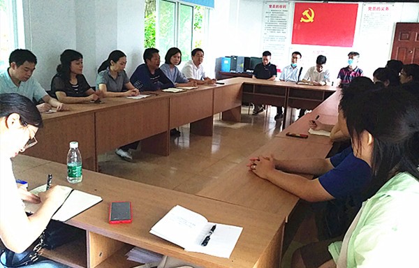 走访完村里各个示范基地,老师们回到民强村村委会办公室,听基层党支部书记讲党课。张书记首先对老师们表示感谢,从去年到今年,支部结对共建两年间相互学习,相互借鉴,相互提高,学院党委对民强村非常支持。随后,张书记讲述了民强村短短5、6年间翻天覆地的变化。在中国共产党领导下,从2014年开始,短短几年间,民强村11.8公里的泥路全部修建为水泥路,山顶规划的9座蓄水池目前已完成6座,路灯已安装4、5公里并计划今年全部完成。张书记感慨道,在国家帮扶下民强村从基础设施落后、基础农业设备老化、满足村民基本生活都成问题的过去,到现在可以同时满足生活和农业生产的需要。他说,以前民强村村委会一间办公室都没有,现在有崭新的办公楼,配套齐全的办公设备,都要感谢党的领导和帮助。今年年初,在国内新冠肺炎疫情紧急的时候,是中国共产党的号召力、凝聚力、行动力,从而做到了全民在家防护,全民戴口罩,才使得疫情在中国迅速被控制。吴启红副院长告诉老师们,在今年新年前夕新冠肺炎突发之时,民强村基层两委挨家挨户上门通知注意事项,过年从未休假,也从未松懈过一刻,把防护工作做到了最细、最严、最实。张书记总结说道,作为党员,要时时刻刻提醒自己:我是谁,我为了谁,我在做什么,我为什么做,要对得起群众,对得起村民。
