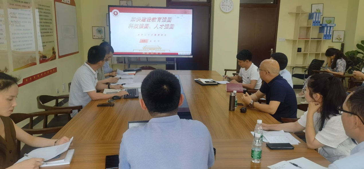 首先,董建辉带领党员学习党的二十大精神,引用了习近平总书记关于如何加快建设教育强国、科技强国、人才强国的重要讲话。习近平总书记在党的二十大报告中提出了“教育、科技、人才是全面建设社会主义现代化国家的基础性、战略性支撑”,系统阐述了统筹推进教育、科技、人才三方面工作的目标和任务,为新时代我国加快建设教育强国、科技强国、人才强国指明了前进方向、提供了根本遵循。