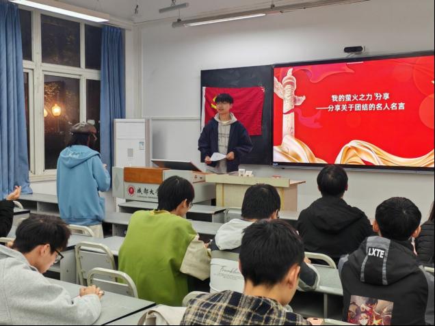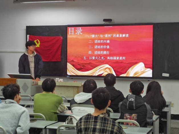 活动伊始,主讲人黄沿陶以“萤火”与“星河”的意象为引,生动阐释了个体与集体的关系。他指出,每个个体虽如萤火般微弱,但通过团结协作、心手相连,便能汇聚成照亮前路的璀璨星河。这一比喻深刻揭示了“聚弱为强”的团结逻辑,引发了在场同学的强烈共鸣。