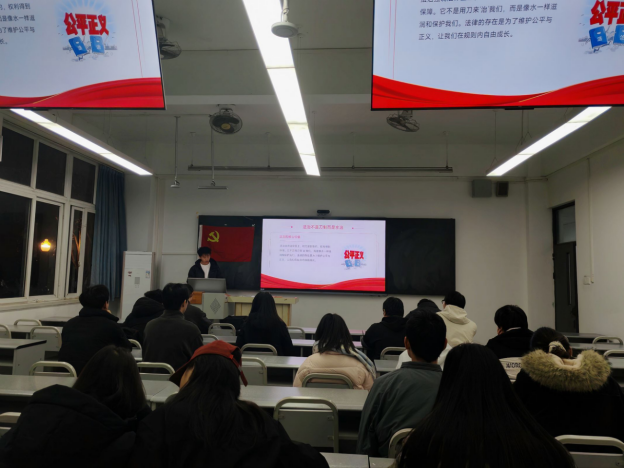 学生第四党支部在6117举办了一场以“让法治走进校园,共同守护未来”为主题的专题学习活动顺利开展,由万芋江同学主讲,围绕法律与青春成长的紧密关联,为同学们带来了一堂生动深刻的法治公开课,引导青年群体知法、守法、用法、护法。