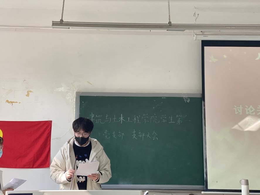 第一党支部于2021年12月20日在5120开展支部党员大会。大会讨论关于李子健等九名同志发展为中共预备党员的章程。朱珂雅同志为本次支部党员大会的主持人。