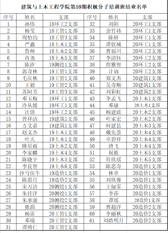 经成人视频 分党校培训考核,第59期入党积极分子培训班结业名单如下: