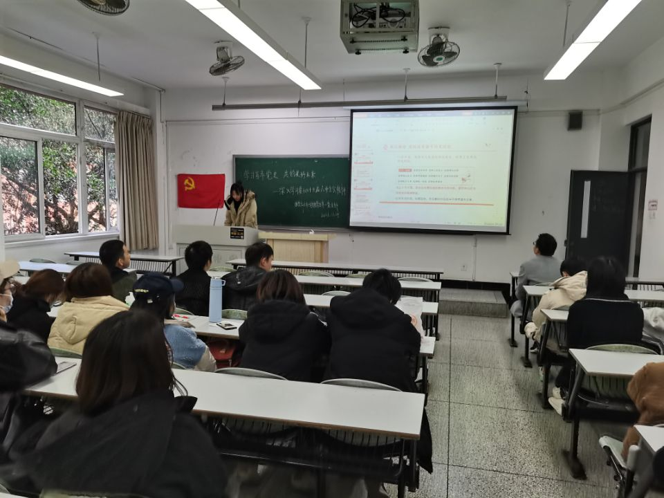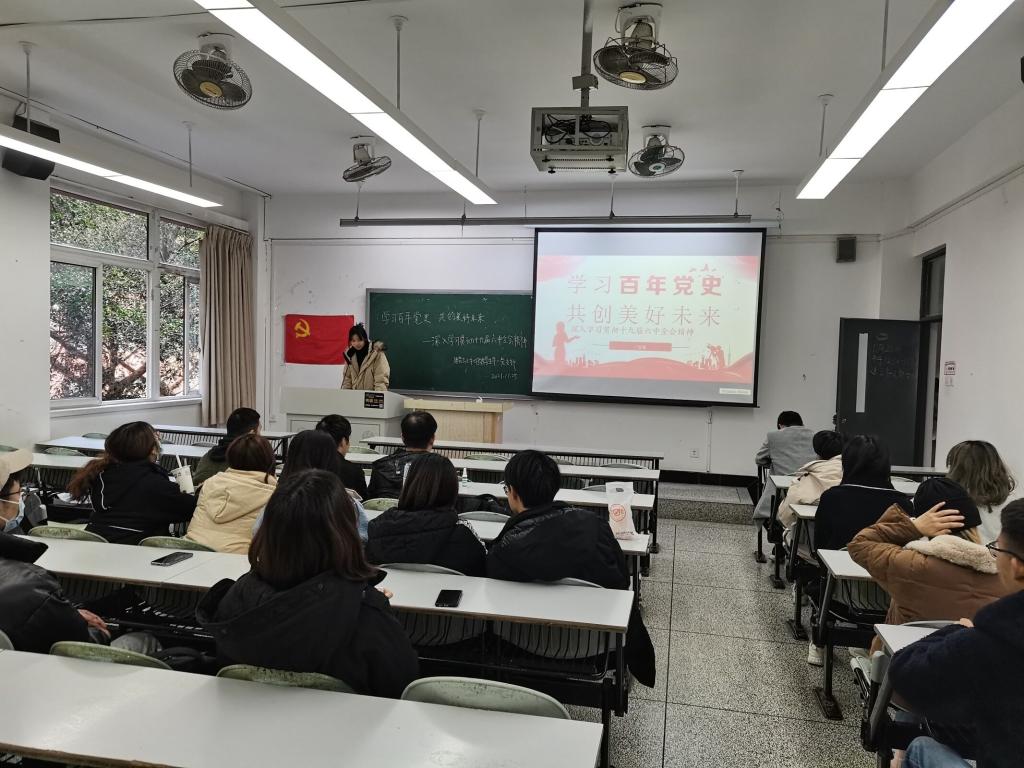 学生第一党支部在5111教室开展了以“学习百年党史,共创美好未来”为主题的十一月组织生活会。出席本次会议的有潘学飞书记及23名学生党员,其中正式党员8名(含支部书记),由潘姝颖同志担任本次组织生活会的主持人。