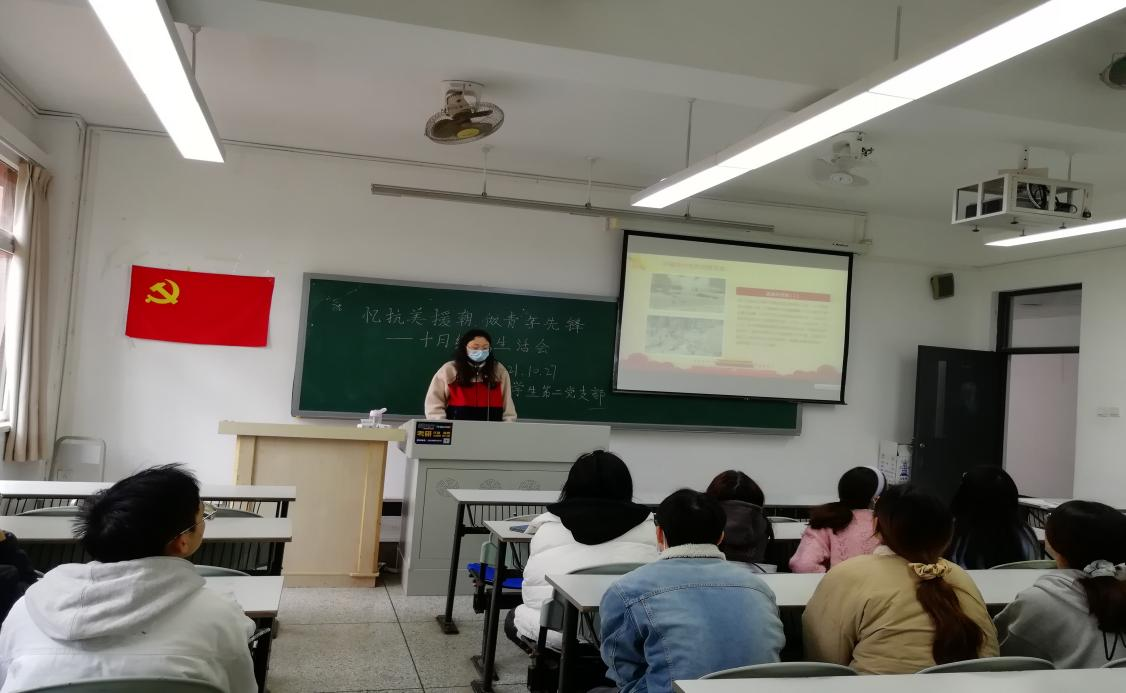 学生第二党支部13名同志到会,此次会议的主题为“忆抗美援朝,做青年先锋”,旨在响应回顾党的光辉历程,让党员们深入了解抗美援朝,追忆“最可爱的人”,学习抗美援朝精神,争做时代先锋。
