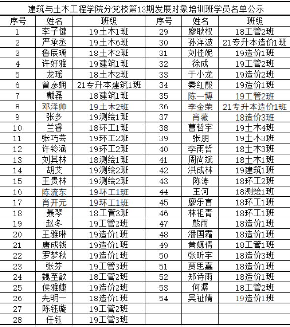 经成人视频 各党支部入党积极分子自主报名与学院党委组织发展对象选拔,根据选拔情况进行相应各支部名额调整,拟推荐参加学院分党校第13期发展对象培训班学员名单如下,公示期为2021年10月14日至10月19日,如有异议者请到学工办孙也椒老师处反应。