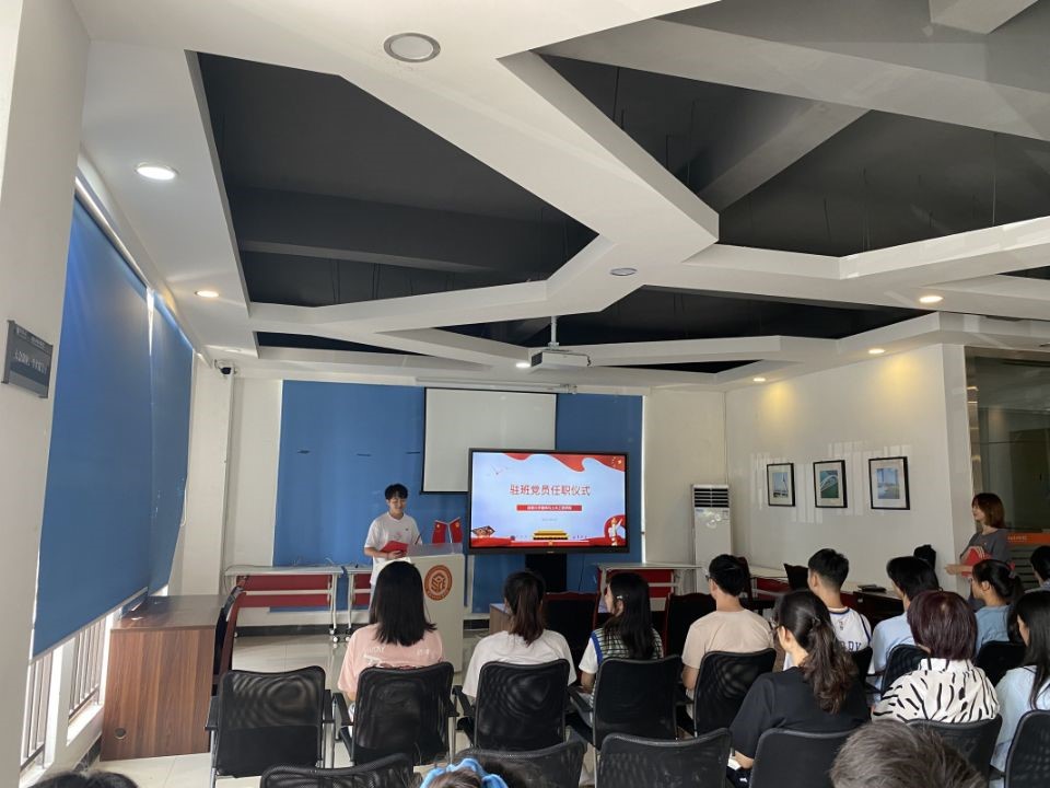 第一届驻班党员任职仪式在建工楼二楼会议大厅举行。本次仪式由李子健同志主持,参加本次仪式的成员有党支部书记舒愉棉、孙也椒老师,驻班党员以及党员先锋队全体成员。