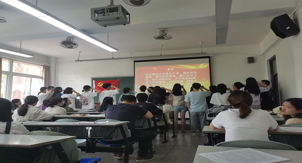 全体转预备党员同志们在领誓人朱慧琳同志的带领下,在党旗下庄严宣誓,也向与会的党员同志们表达了自身决心与毅力:爱党、敬党、维护党!在今后的学习工作生活中,学习更多优秀先进的党员工作经验,努力提升自身的综合素质,紧跟党的步伐! ‘