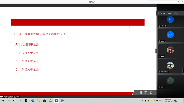 会议末尾开展了线上问答环节,通过会议对“十四五”规划的了解,与会党员认真总结,积极参与,踊跃回答,在活动的同时将“十四五”规划的新图景、新目标和新要求铭记于心。