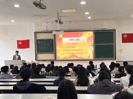 典礼第三项,由分团委组织部负责人马雨桐和党员先锋队负责人陈泉旭分别介绍了积极分子和发展对象的开班纪律、要求以及最后成绩的评定原则。