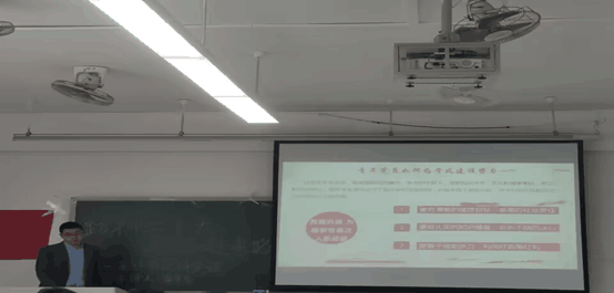 本次党课以学风建设为主题,潘学飞同志以大学期间自身学习经历为切入点,从党员同志的学习生活出发,生动讨论了早晚自习、考公考研等话题,并引用习近平总书记在党的二十大报告中的讲话“当代中国青年生逢其时,施展才干的舞台无比广阔,实现梦想的前景无比光明”,激发了党员同志的学习热情。