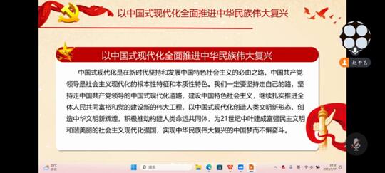 学习过程中,赵书艺同志分享了一段视频。通过视频学习和引领,让党员同志们更深层次,更多元化去了解认识中国式现代化。