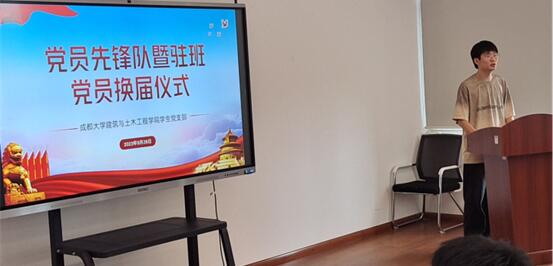驻班党员换届仪式在建工楼3楼306会议室举行。参加本次仪式的有学生党支部书记孙也椒老师,党员先锋队全体成员、驻班党员以及青年先锋队队员。
