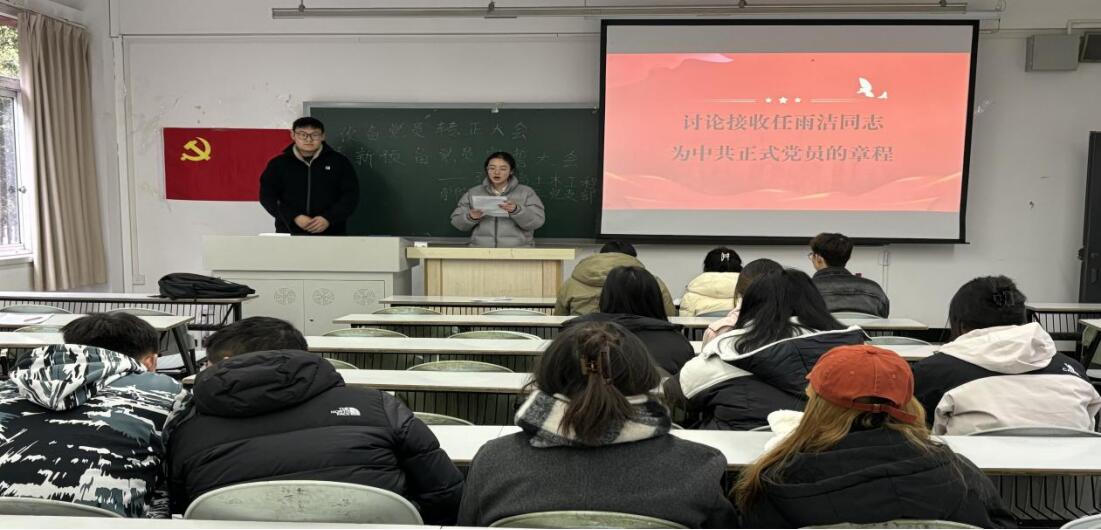 然后,学生第三党支部书记孙也椒同志进行了总结。书记首先对七名预备党员顺利转正表示祝贺,而后对七名同志表达期许,希望同志们时刻铭记自己的党员身份,以更加严格要求约束自身言行,不辜负党组织的培养与信任,全心全意为人民服务。