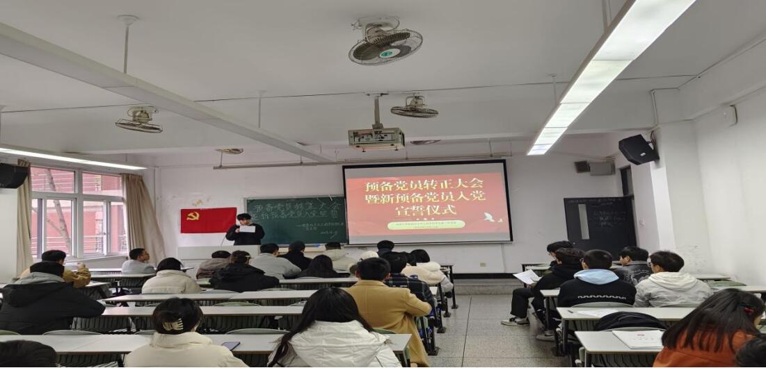 学生第一党支部于5120室召开支部党员大会,会议主题为“讨论关于李孟飞等六名同志转为中共正式党员的章程”。此次大会由颜晓东同志主持,学生第一党支部成员及预备党员参加会议,应到32人,实到31人,其中正式党员13人,学生第一党支部书记潘学飞同志出席本次会议。