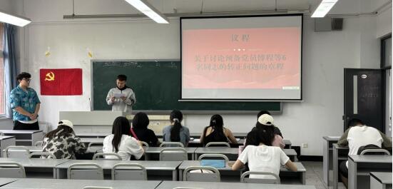 学生第三党支部在6120召开了预备党员转正大会。本次会议由曾泓钦同志主持,会议应到24人,实到18人,其中正式党员应到13人,实到7人,超过应到会有表决权人数的半数,本次会议有效。
