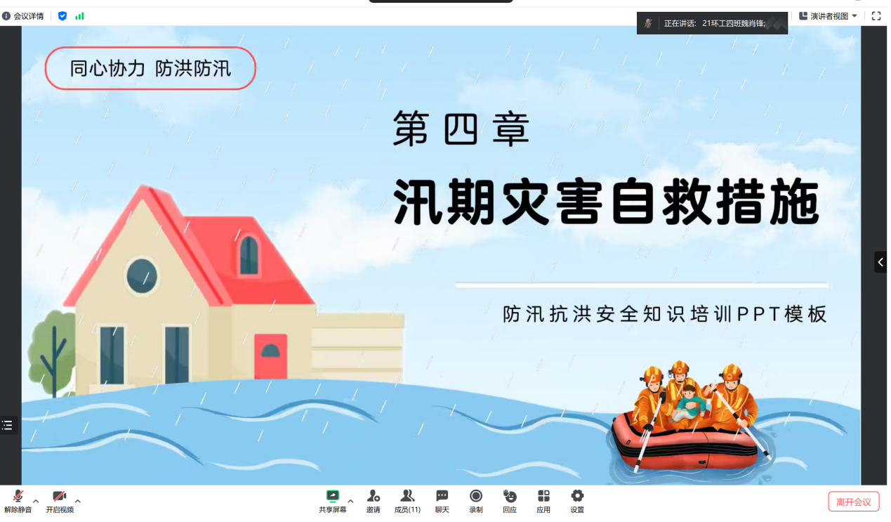 最后,魏肖锋同志为与会同志讲解了汛期灾害自救措施,提供了多种灾害危险(如洪水暴发、泥石流、滑坡以及雷击等)情况下的防备与自救措施,提升了同志们的自我保护意识与应急能力。