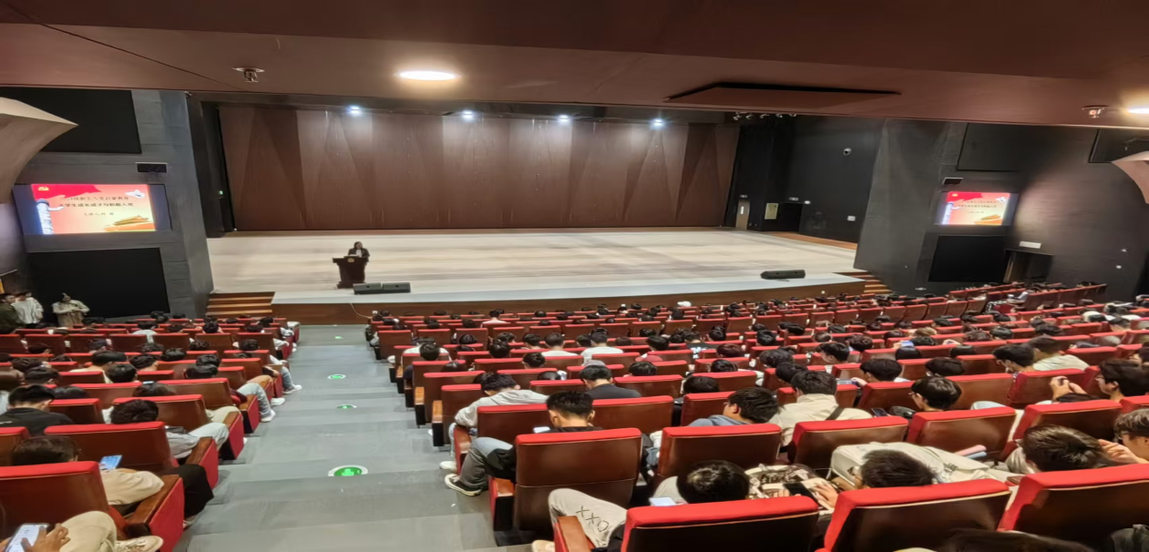 2024级全体新生开启这场意义非凡的党课之旅。2024级全体学生满怀着憧憬与期待,齐聚于此,共同聆听这场思想的盛宴。