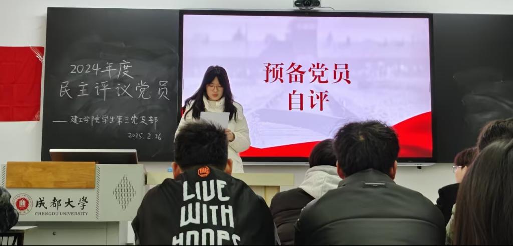 孙老师发言结束后,正式党员依次进行自我评价。他们全面总结了自身表现,对未来提出了更高要求。在志愿服务方面,不少党员志愿服务时长累计超过 300 小时,充分展现了党员的奉献精神。此外,部分党员在班级担任班委,积极发挥模范带头作用,带领全班同学共同奋进。
