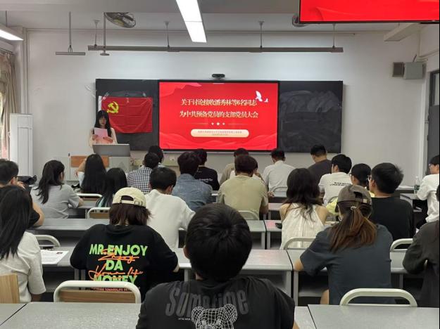学生第三党支部在5109召开了关于讨论接收潘秀林等六名同志为中共预备党员的支部大会。本次会议由李熠娇同志主持,会议应到正式党员15名,预备党员16名,实到正式党员10名,预备党员14名,超过到会有表决权人数半数,本次会议有效。