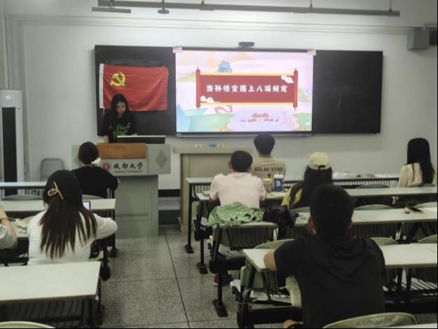 活动现场,主持人播放了动画《当孙悟空遇上八项规定》,以新颖有趣的方式解读中央八项规定精神。动画借助经典神话形象孙悟空,通过生动情节与对话,让党员们更直观、轻松地理解八项规定内涵,为严肃的党纪教育增添活力,使党员们在寓教于乐中深化对规定的认知与重视。