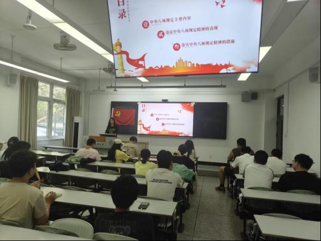 活动伊始,为深入贯彻中央八项规定精神,落实学院党委关于全面从严治党的工作部署,林杰同志指出了违反中央八项规定精神的表现,结合学院党委近期会议精神,强调学生党员应以身作则,将作风建设融入日常学习和生活中。