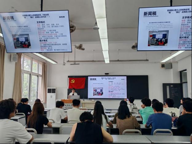 其次新闻稿写作部分。在撰写新闻稿时,要明确文字格式规范,图片数量要求最好是三张及以上。在写作上需以第三人称视角,避免出现“我”“我们”等人称代词。内容结构上,新闻稿应包含准确的时间、地点、主语、宾语、主持人及支部到会情况。叙述活动步骤时,需灵活运用过渡词连接,要求语句通顺、“主+谓+宾”结构完整,避免重复啰嗦、偏题,杜绝错别字和原则性文字错误。结尾需联系前段内容,升华主旨。在此过程中,每位与会成员都认真观看学习并做好笔记。
