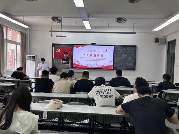 随后,在查摆剖析环节,潘远飞同志遵循“坚持问题导向、把自己摆进去、把职责摆进去、把工作摆进去”的核心原则,聚焦青年党员的“思想作风、学业科研作风、集体服务作风、生活纪律作风、群众联系作风”五大方向展开深度剖析,并让八名党员同志上台,对照八项规定精神进行个人自查。
