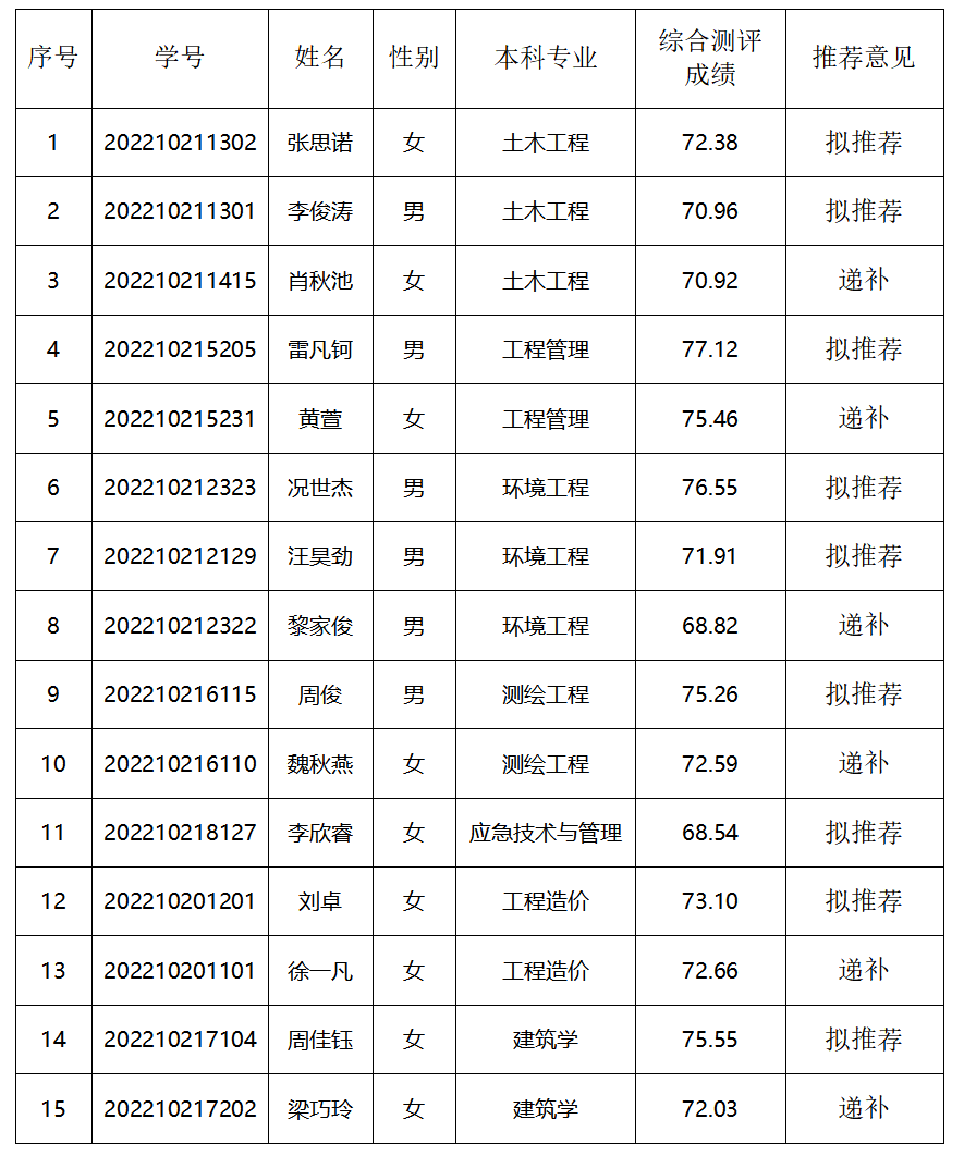成人视频 、应急管理学院2026届优秀本科毕业生免试攻读研究生拟推荐及递补名单