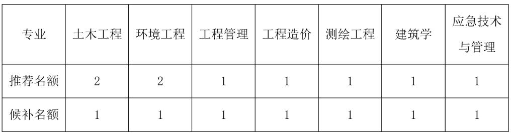 学院根据学校下达的推免指标,结合学院学科专业情况,确定各专业的推免指标及候补人选指标。各专业的推免指标如下,候补人选指标数按推免指标数的50%计算(计算结果不足1人的按1人计)。若某一专业推免指标未用完,经遴选工作小组同意后,可调剂至其他专业使用。