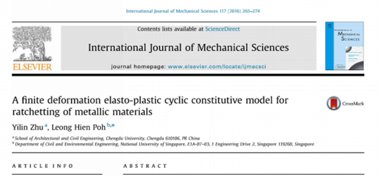 (二)在《International Journal of Mechanical Sciences》上发表A finite deformation elasto-plastic cyclic constitutive model for ratchetting of metallic materials