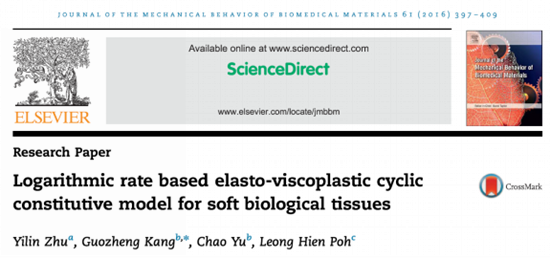 (一)在《Journal of the Mechanical Behavior of Biomedical Materials》上发表Logarithmic rate based elasto-viscoplastic cyclic constitutive model for soft biological tissues