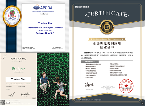 在能力提升方面,箭竹工作室教师代表赴北京参加清华大学社会科学学院第十三期积极心理学导师实践班线下学习,获Points of You Points of You® L1 教练培训师认证、生涯理论咨询应用结业证书;在对外交流学习方面,箭竹工作室教师代表参加亚太生涯发展协会2024年会以及北森生涯主办《中英线上交流工作坊——共话新时代生涯发展教育课程建设》线上交流。