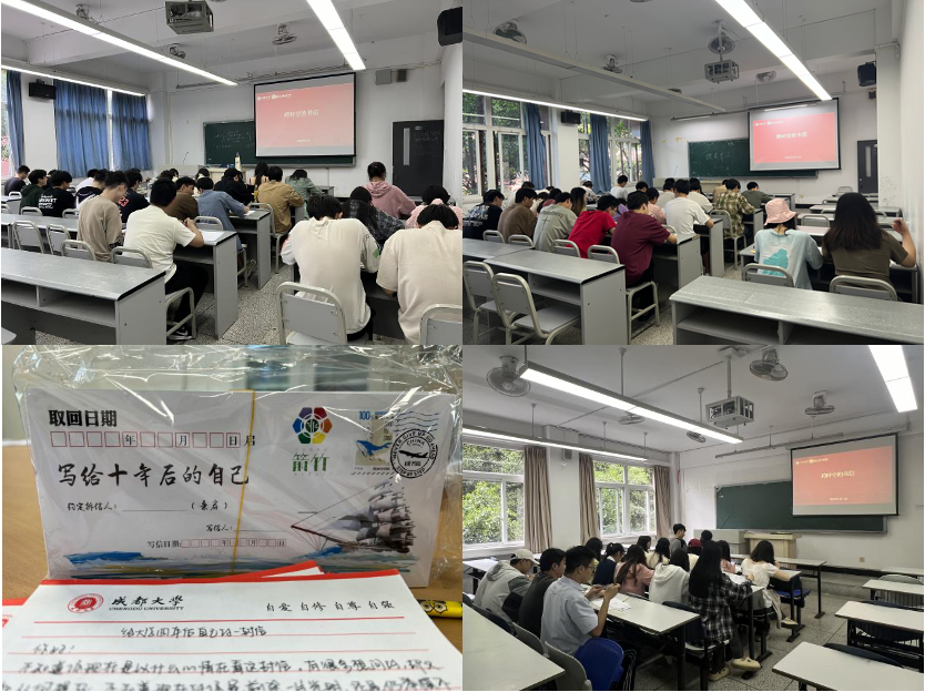 信件是一种传统的沟通方式,也是一种记录方式,能够记录下学生此刻的想法感受和目标,具有独特的情感价值“回首四年之初,寄语十年之后”项目旨在通过学生阅读四年前的信件来清晰地看到自己过去的成长和变化,体会到时间的流逝,学会更好的管理时间。项目第二项是为十年后的自己写一封信来回顾大学的生活状况、学习进度、兴趣爱好以及面临的挑战。学生可以在信中表达自己对未来的期望、梦想和愿望,也可以设定自己的目标,这种目标的设定有助于学生明确自己的奋斗方向,从而在未来的道路上更加坚定。