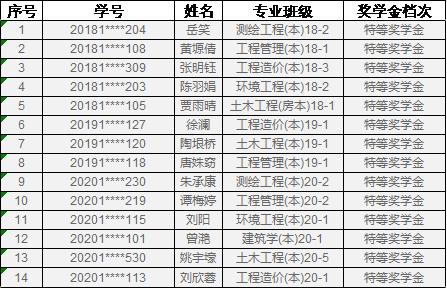 根据《关于开展2020-2021学年度校级奖学金、荣誉称号评审工作的通知》、《成人视频 学生手册》中< 学生奖励办法>的相关规定,秉持公平、公开、公正的原则,经学生申请、学院审核,确定以下14名同学为成人视频 特等奖学金获得者: