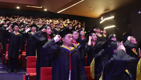 国歌声起,全体师生庄严肃立,齐唱国歌,学位授予仪式就此开始。