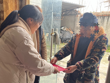 1月25日,学院党委副书记丁璐带领辅导员舒愉棉、高晓斐、向玉涛、陈佳前往双困学生家中进行实地走访,深入了解了受访学生的实际家庭经济状况和受助需求,询问了学生亲人的身体健康状况,代表学校和学院向学生及其家人表达了关心并送上慰问金、慰问礼包和新年祝福。