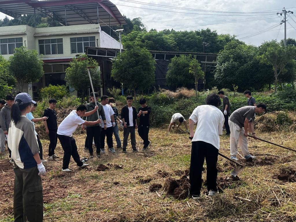 、旅游与文化产业学院开展联合“劳动教育”主题教育活动,建筑与土木工程陈佳、李峰、舒愉棉带领125名同学走进学校对口帮扶点简阳民强村,近距离感受乡村气息,用双手创造劳动,用脚步丈量土地厚度,在夯土垒石中重构对劳动价值的深层认知。
