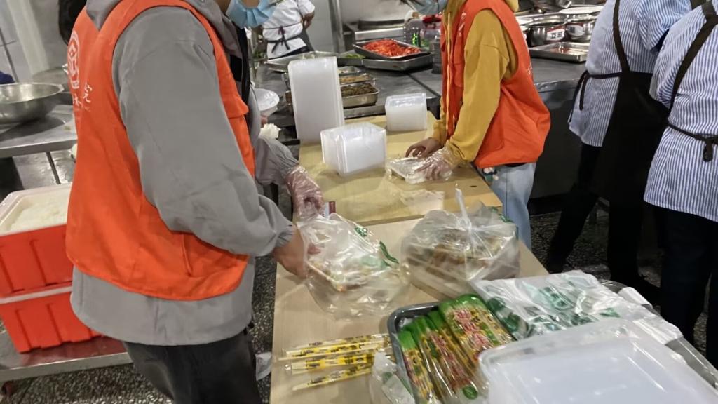 在志愿服务活动过程中,每一位志愿者始终怀揣满腔热情,投入到此次志愿活动中,在忙碌的活动中,志愿者们认真的完成了每一个餐盒的打包,装袋。