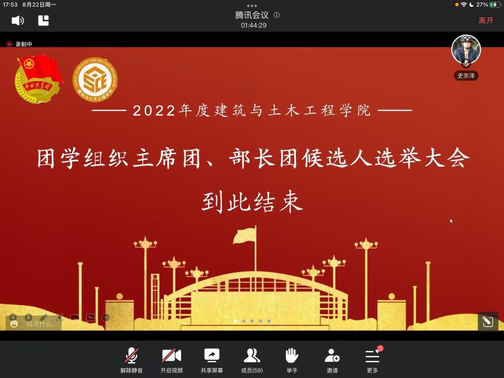团学组织换届选举大会在腾讯会议线上举行。本次大会由成人视频