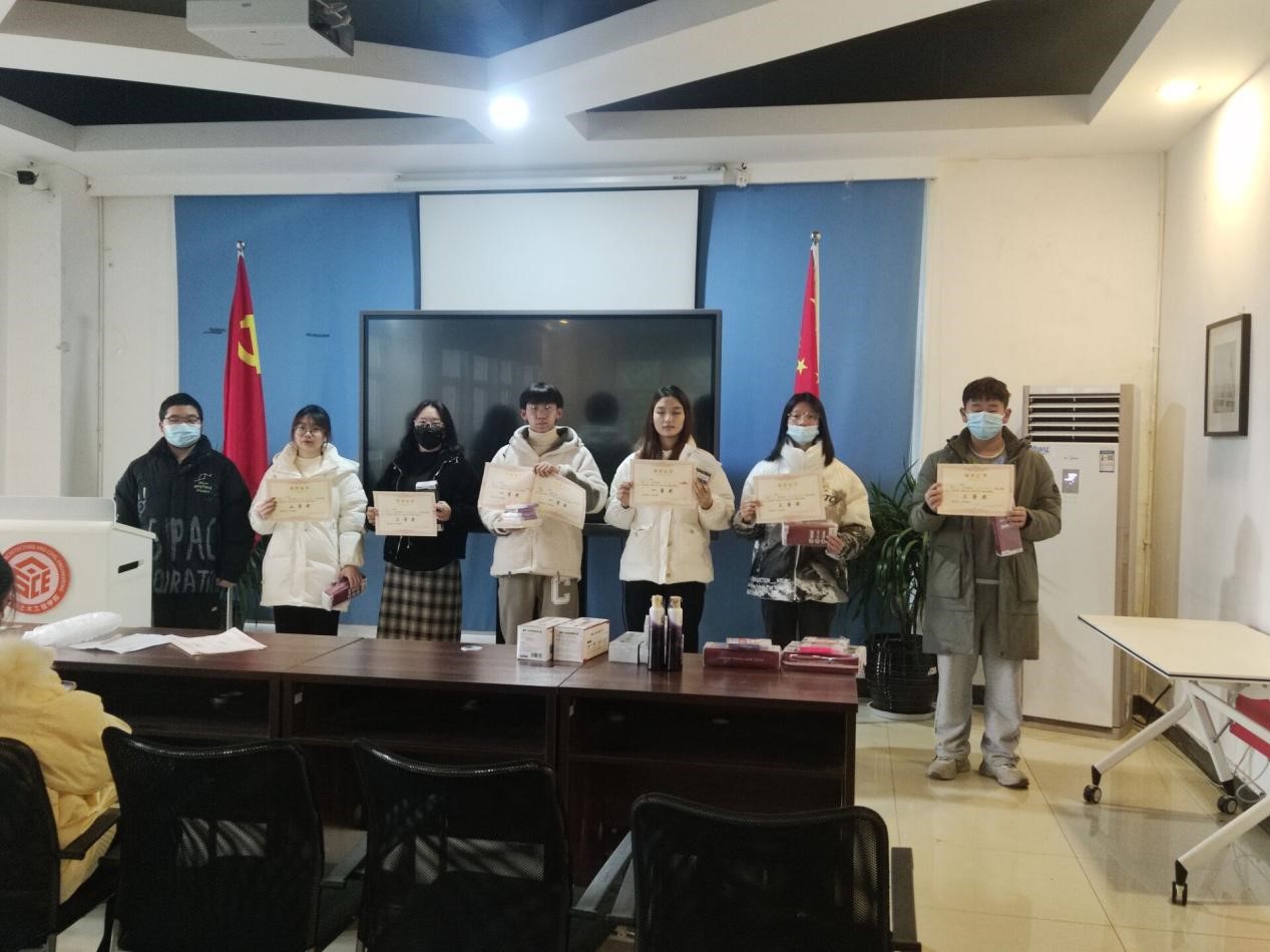 生活心理部干事在认真旁听各班心理班会后,分别从心理委员介绍主题是否详细、有无科普心理知识、班级氛围是否活跃有趣和同学是否积极参与并反馈四个方面进行细致打分,最后将各班成绩汇总,评选出一、二、三等奖,并于2021年12月28日下午4点在建工楼大厅进行颁奖。