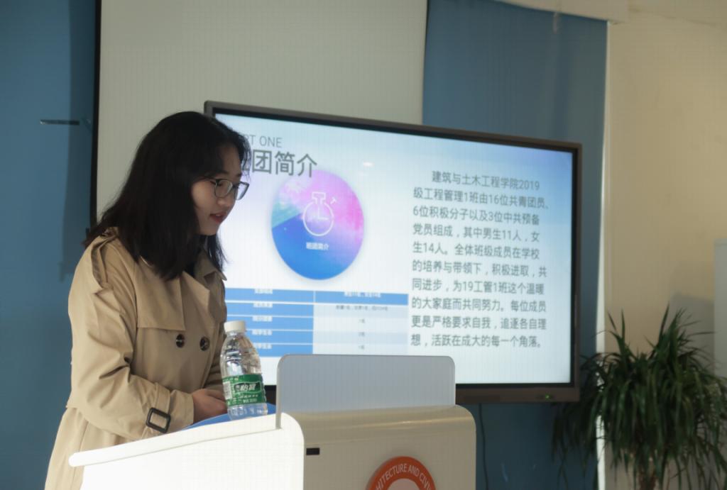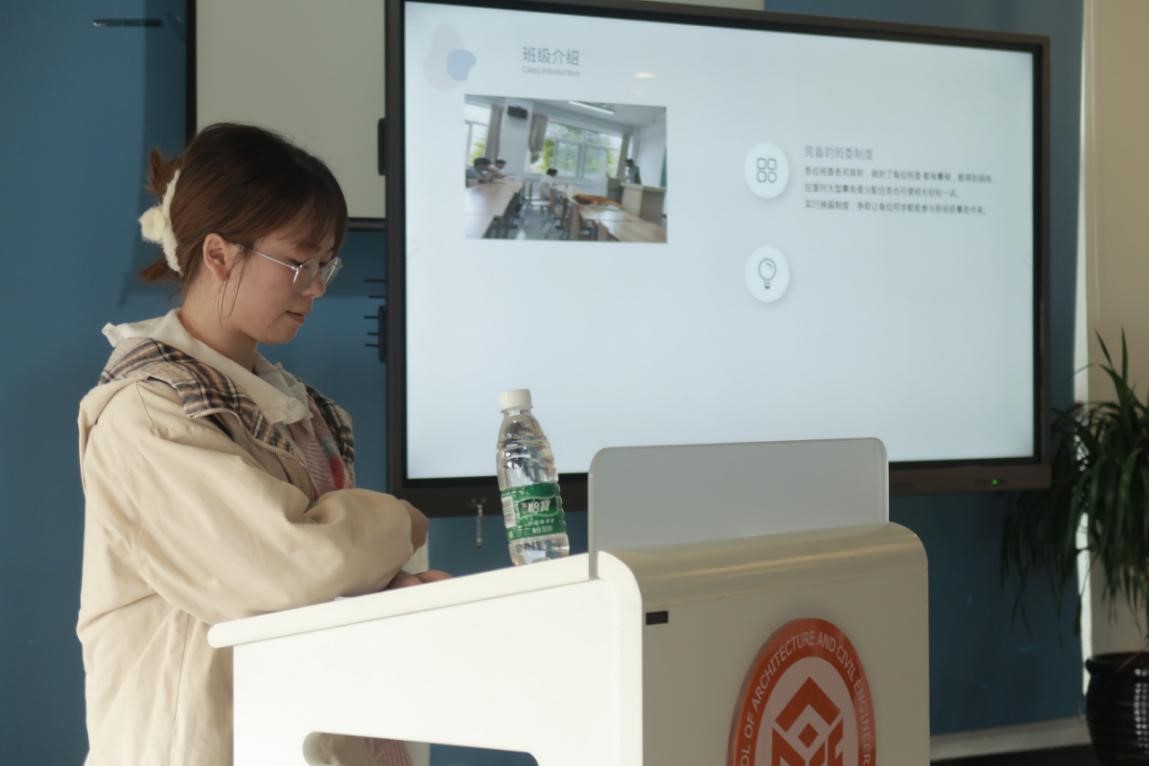 于建工楼大厅开展2020-2021学年度学校先进班集体评选活动。本次评选由学工办潘学飞老师主持。