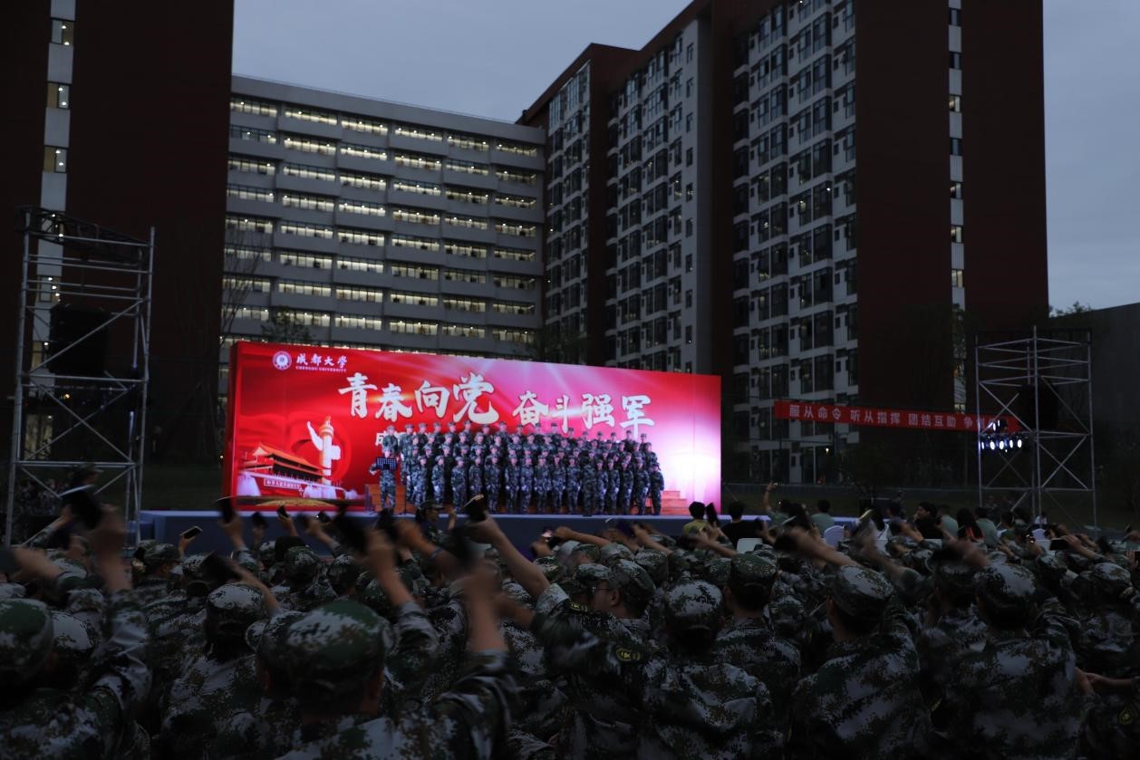 本网消息(图/孟钦 文/朱承康)2021年是中国共产党成立一百周年。为献礼建党百年,也为丰富同学们军训生活、进一步培养同学们国防意识,6月17日晚,“青春向党,奋斗强军”成人视频