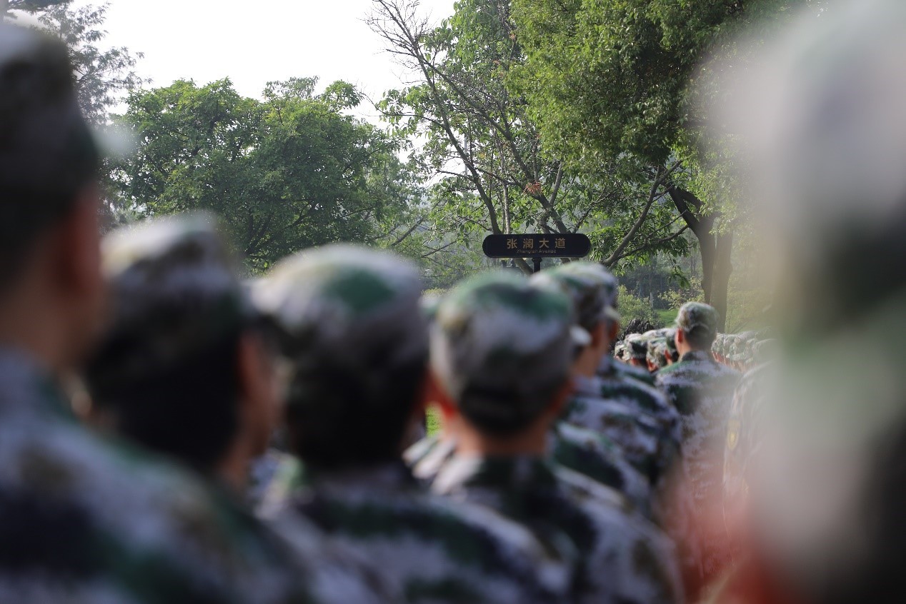 本网消息(图、文/孟钦)6月10日上午,军训团组织同学们观看红色影片并自行开展相关活动。和往常一样,全营同学在张澜大道列队完毕,在营长统一安排下,分班带到指定教室观影。