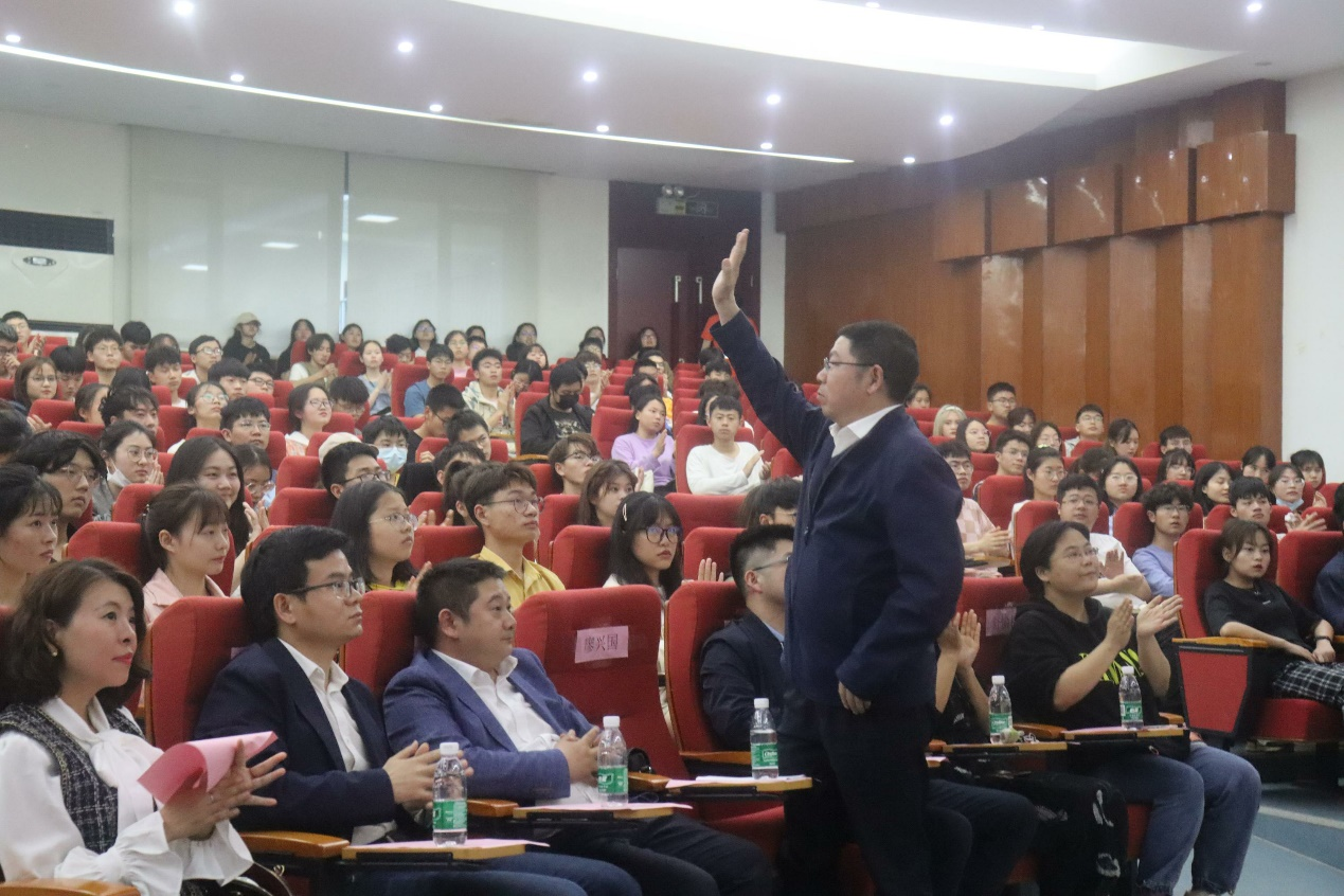 廖兴国主任就“大运会场馆有怎样的规划理念和设计特点”进行讲解,从选材、设计等角度全面地介绍了大运会场馆的建设理念,带领大家进一步了解大运会的场馆建设。