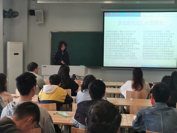 随后曾晓宇同学表演Rap《永远跟党走》、郑林铃、胡源龙等六名同学的诗朗诵《一首歌》,用音乐与诗朗诵的形式,献礼建党100周年,班会在一片喝彩声中走向高潮。