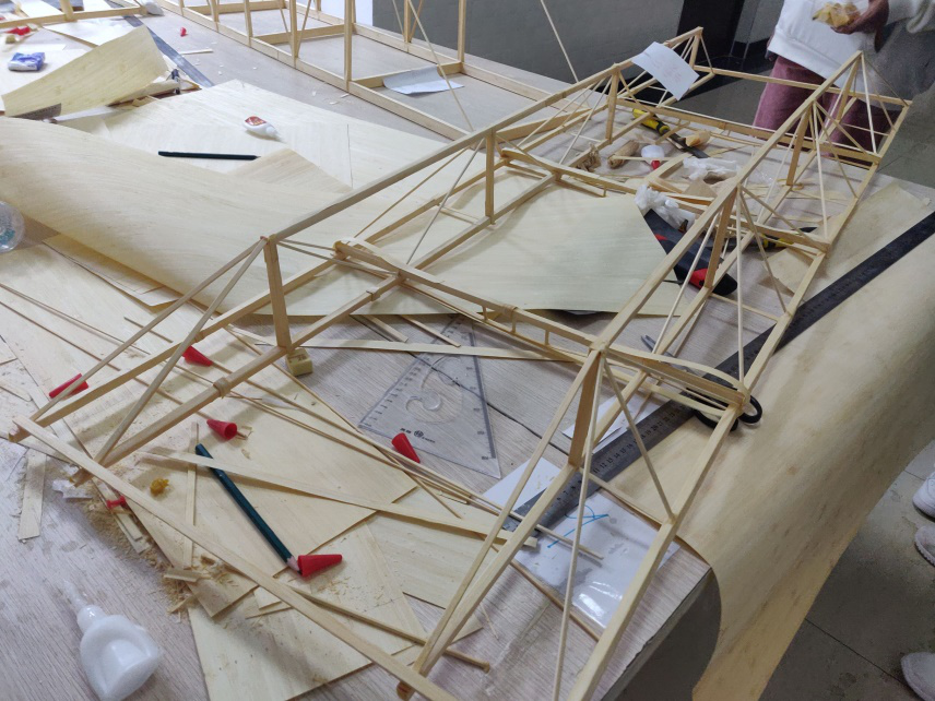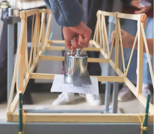 出于场地限制及人数考量,比赛分为两个场次进行。同学们有条不紊井然有序的在巡场人员监督下,进行结构模型制作,共有48组完成赛题。