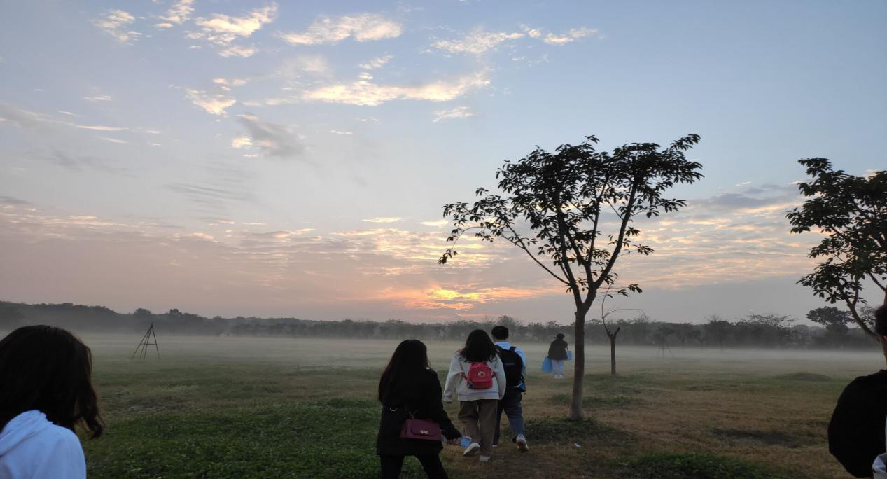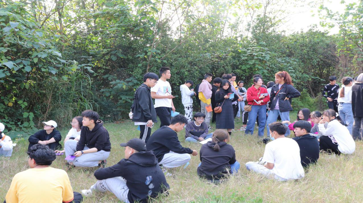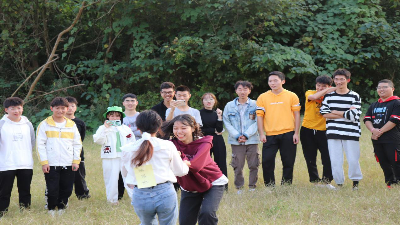 下午1点20分,全体成员于南门处集合签到。下午1点29分,集合完毕,由团校干事带领两委会其他成员前往青龙湖湿地公园的大素拓场地。